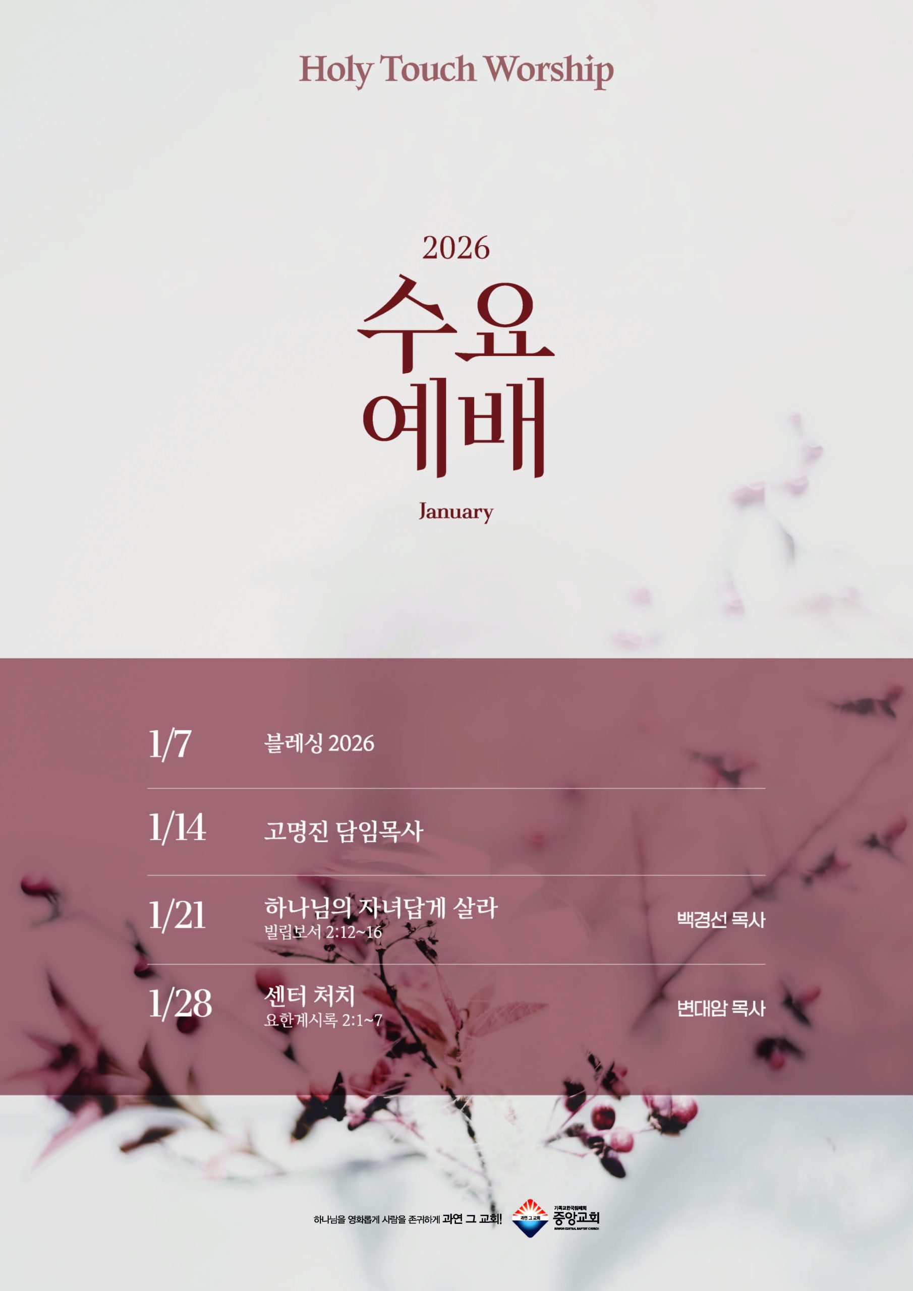 1월 수요 홀리터치 예배 안내