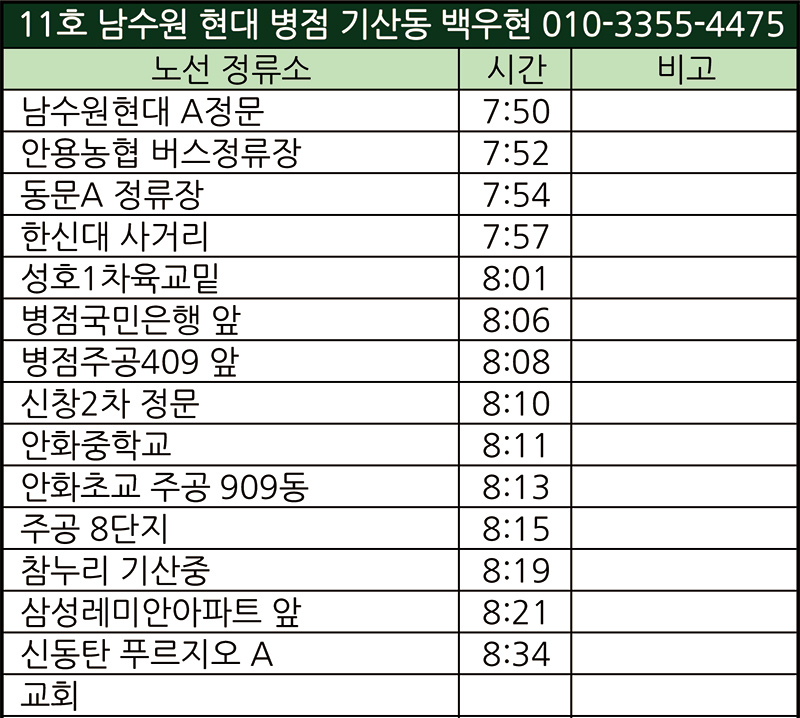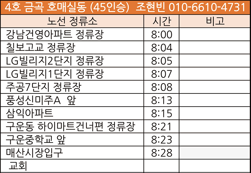 교동(새성전)주일예배 차량운행 노선표